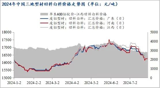 截止7月底,鋁價相對5月底高位時期下跌2800元/噸左右,下跌12.9%。而7月底再生鋁棒主要廢鋁原料之一的型材舊料白料價格在16250-16350元/噸,相比21700元/噸的鋁價高位時期,舊白料價格下跌1150-1200元/噸,下滑6.60%左右,廢鋁價格下跌幅度遠不及鋁價。在鋁價持續(xù)回落的單邊行情下,廢鋁貨場來不及出貨,持續(xù)處于虧損狀態(tài)。受成本端支撐,貨場挺價惜售意愿較強,市場上廢鋁流通量大幅減少,再生鋁棒企業(yè)采購困難,成本拉升。
