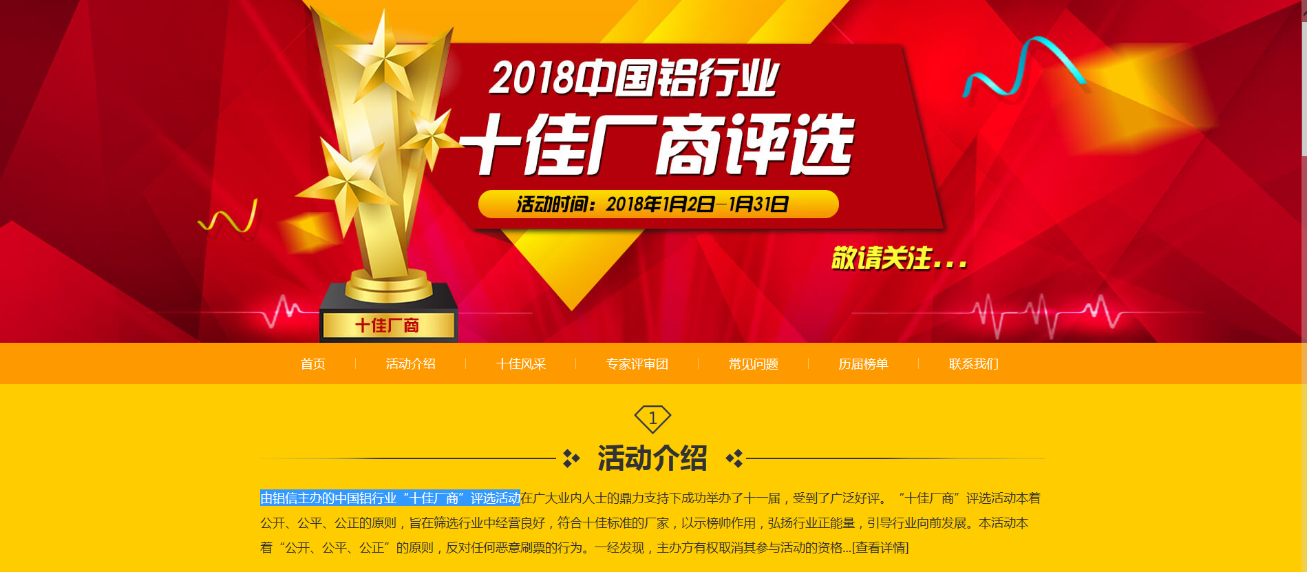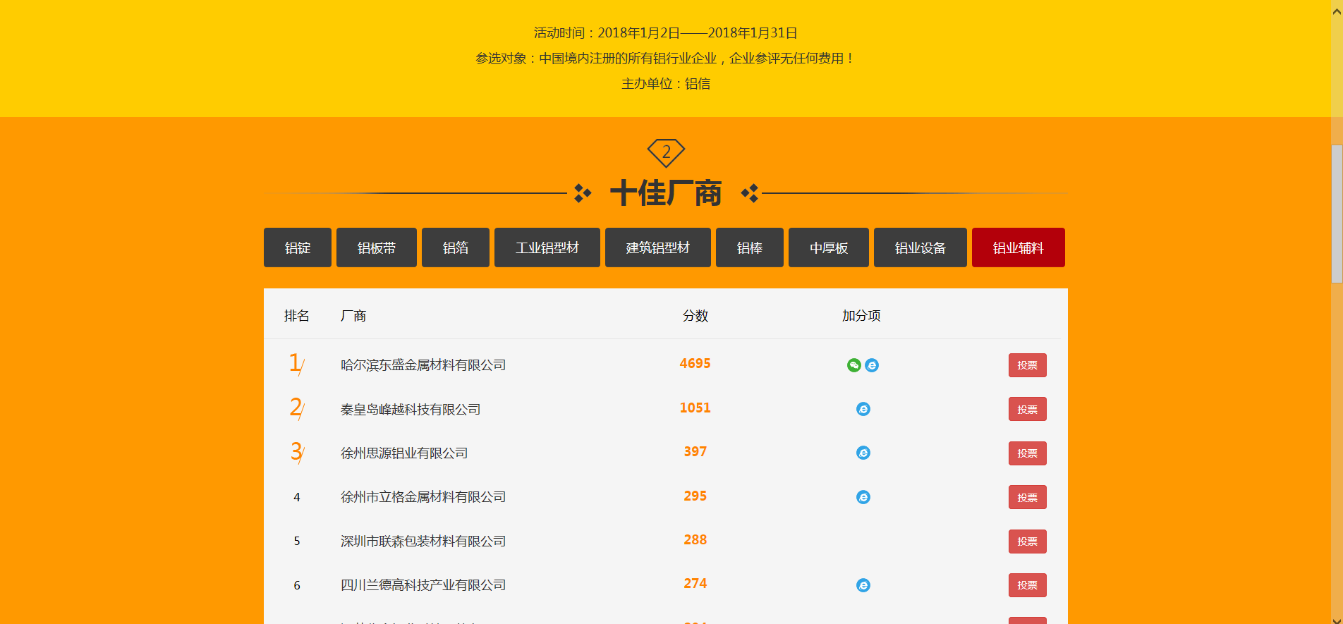 公司參加由鋁信主辦的中國鋁行業(yè)“十佳廠商”評選活動(dòng)